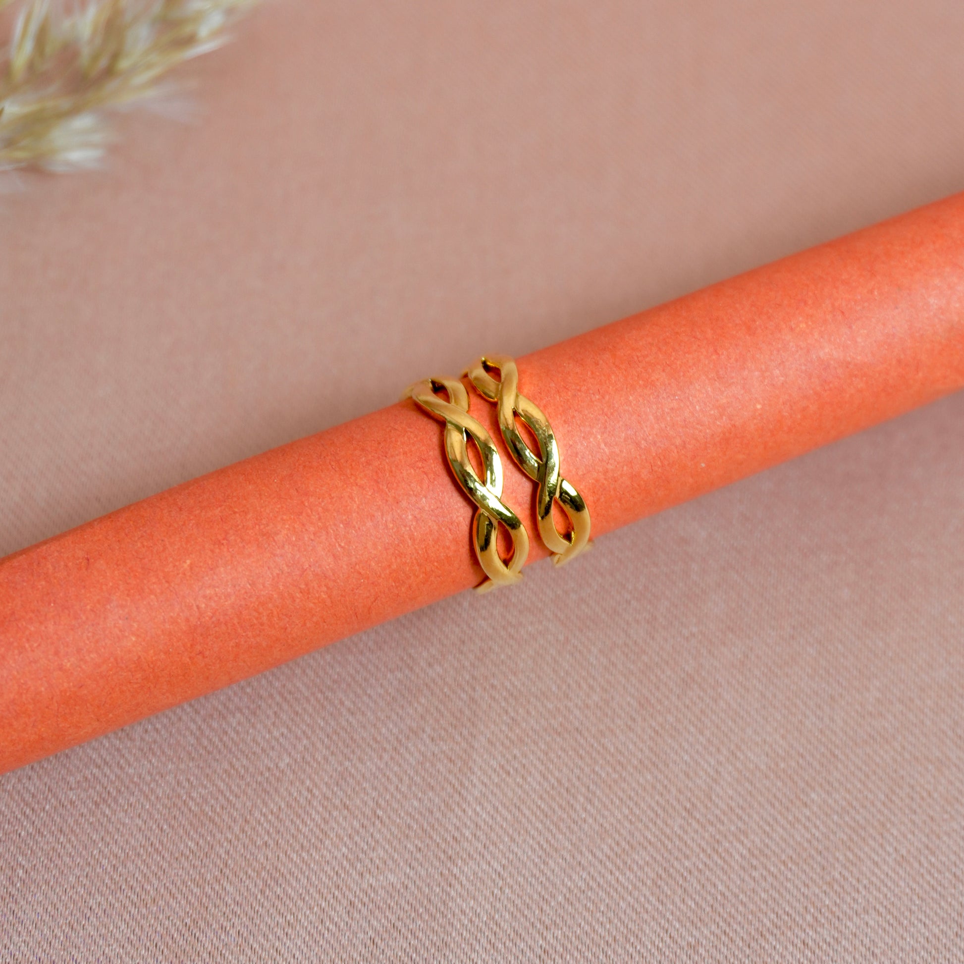 Showcase timeless elegance with this adjustable gold-plated double braid ring, featuring an intricate woven design that complements both everyday and festive looks. A versatile and stylish addition to any fashion jewelry collection.