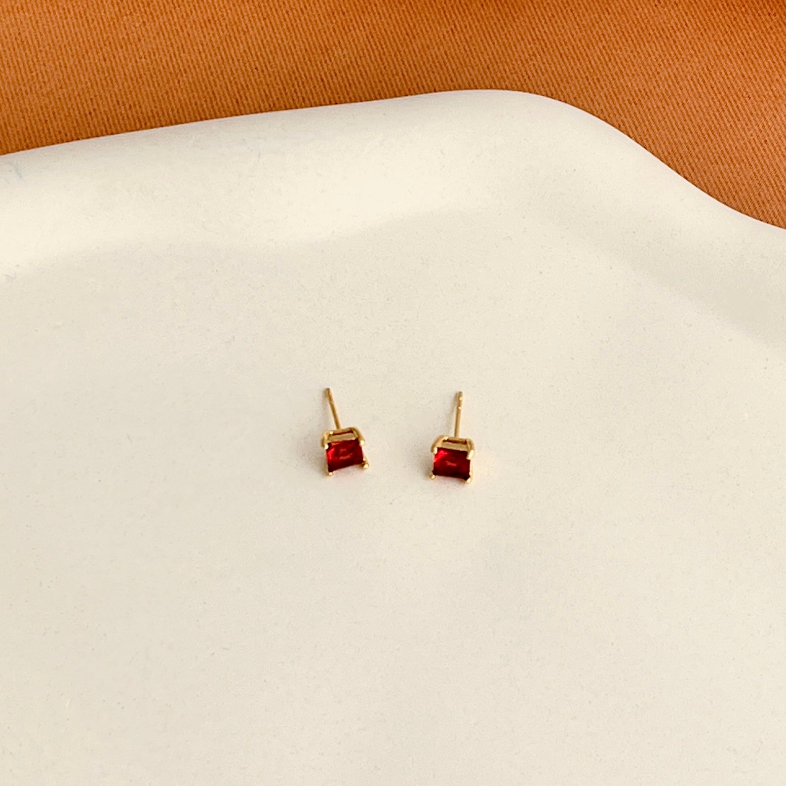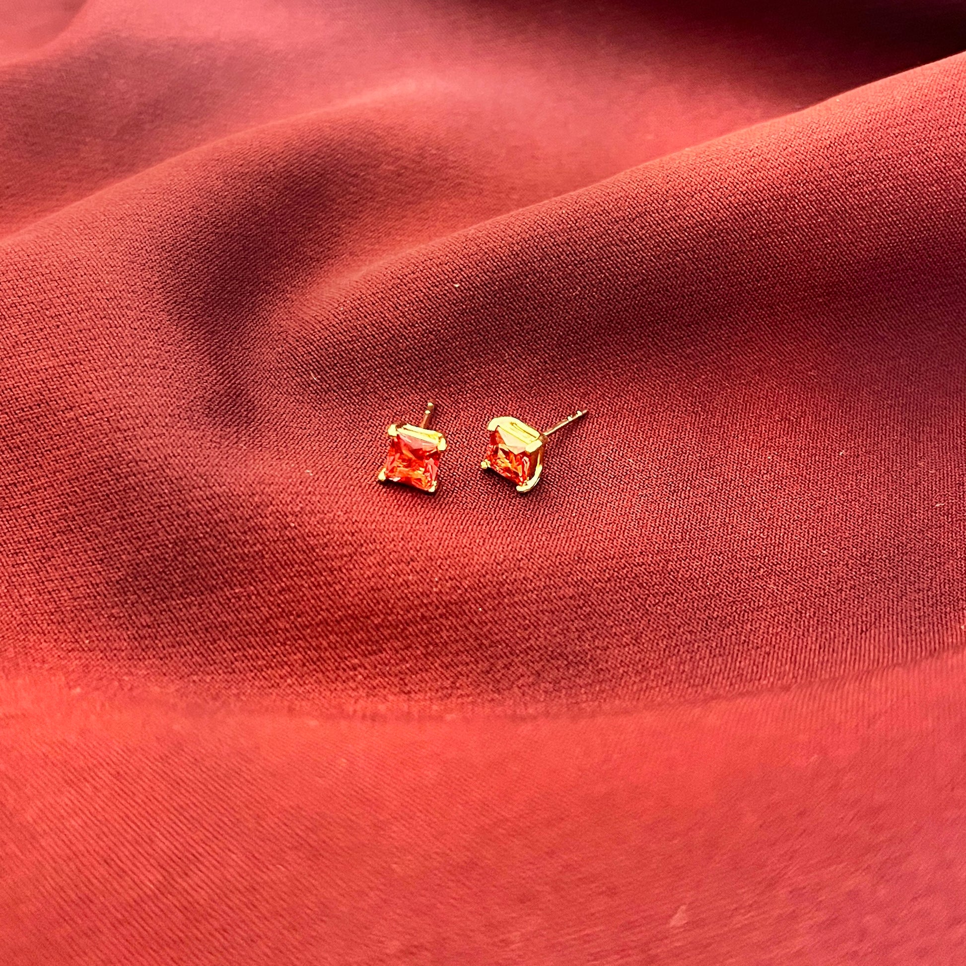 Add a touch of sparkle with these elegant red stone square studs, featuring a brilliant ruby-red square-cut crystal set in a gold-plated finish. Lightweight and versatile, they’re perfect for everyday wear or adding a refined accent to special occasions.