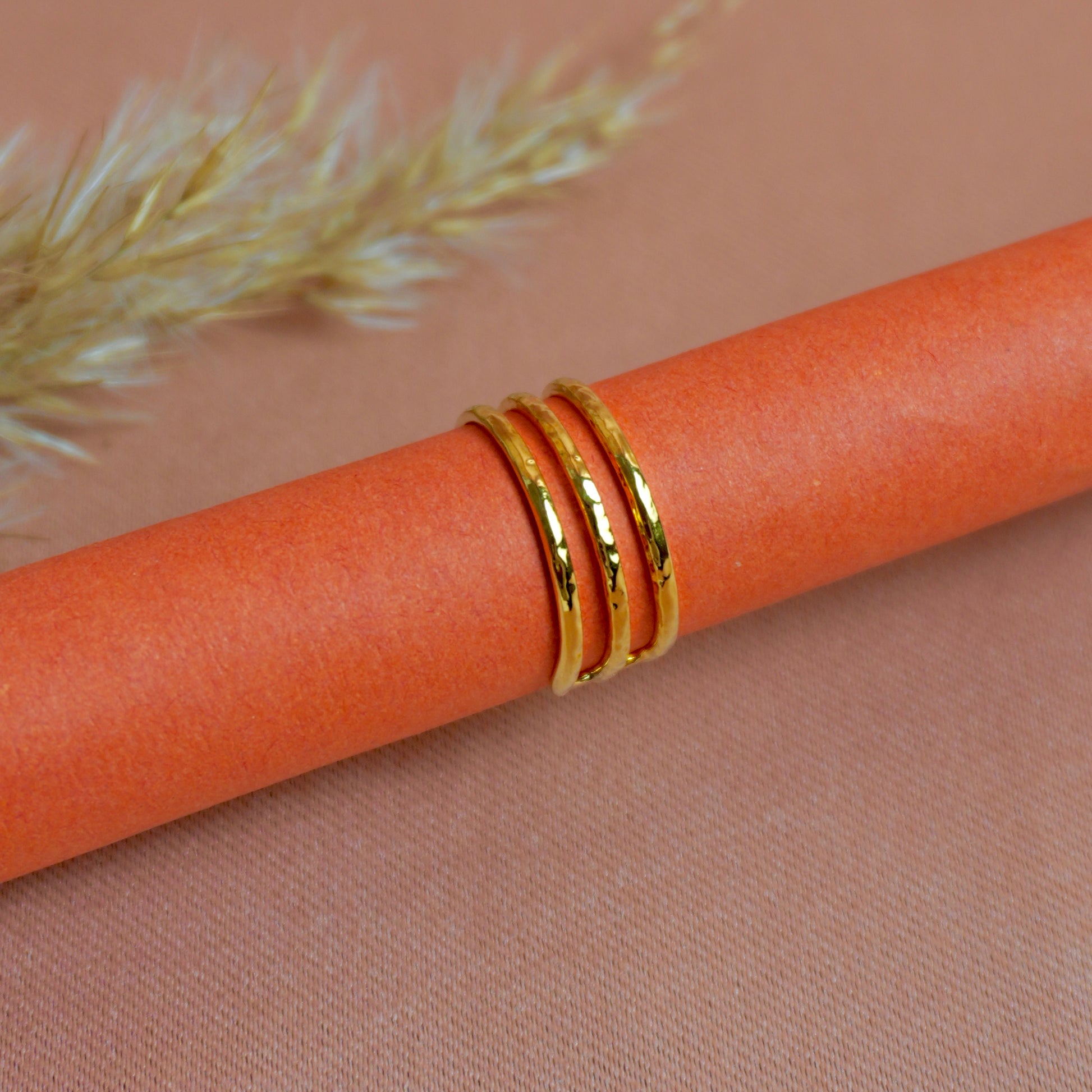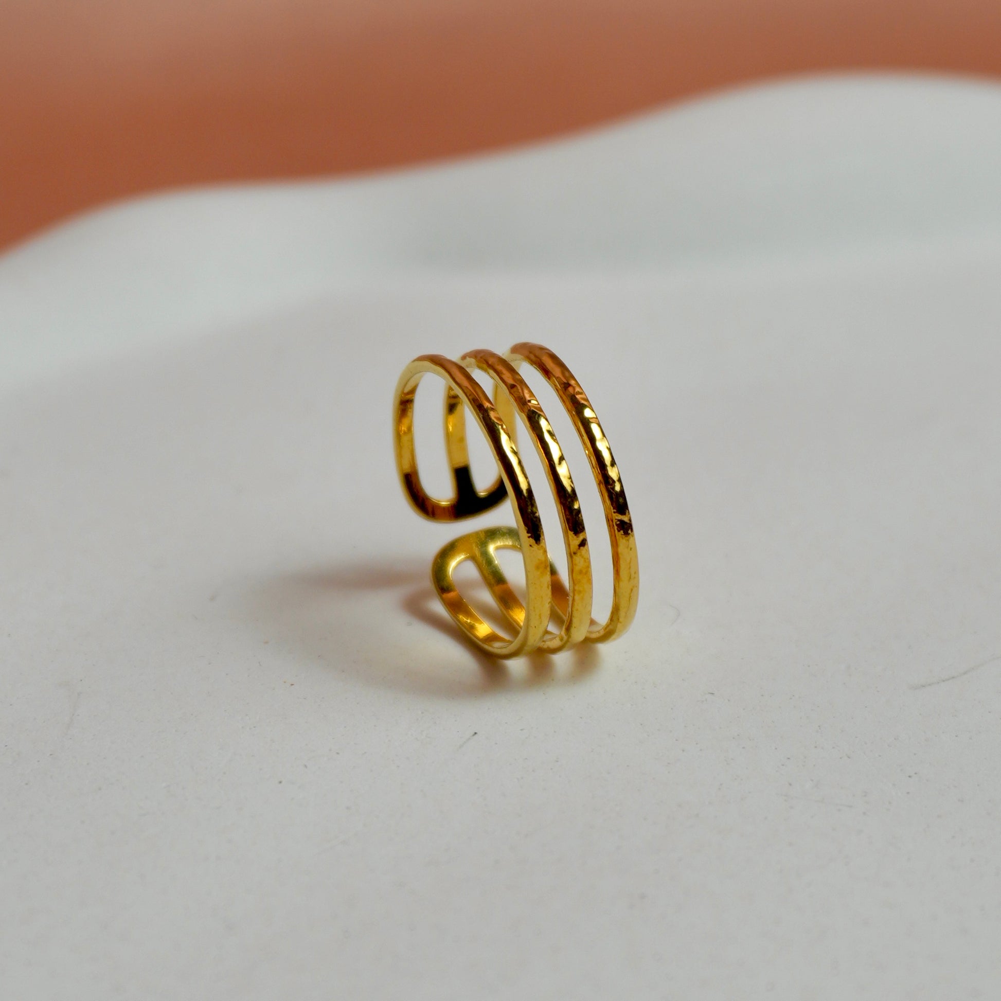Show off contemporary elegance with this adjustable gold-plated three-layer ring, featuring a sleek stacked design that brings a modern twist to your jewelry collection. Perfect for everyday wear or to elevate a special occasion outfit.